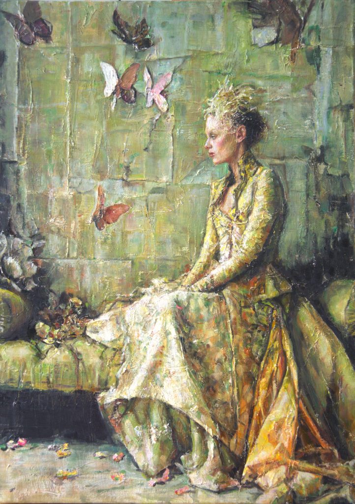 The butterflies echo this quiet transformation: delicate, unstable, never fixed.